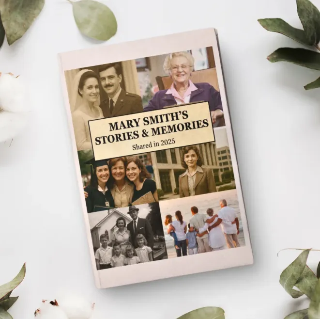 Whichever path you choose, you’ll receive professional story weaving and a professionally laid out full color, hardcover book, with the option to order extra copies. Whether through interviews or correspondence, we make it simple to preserve your legacy for generations.